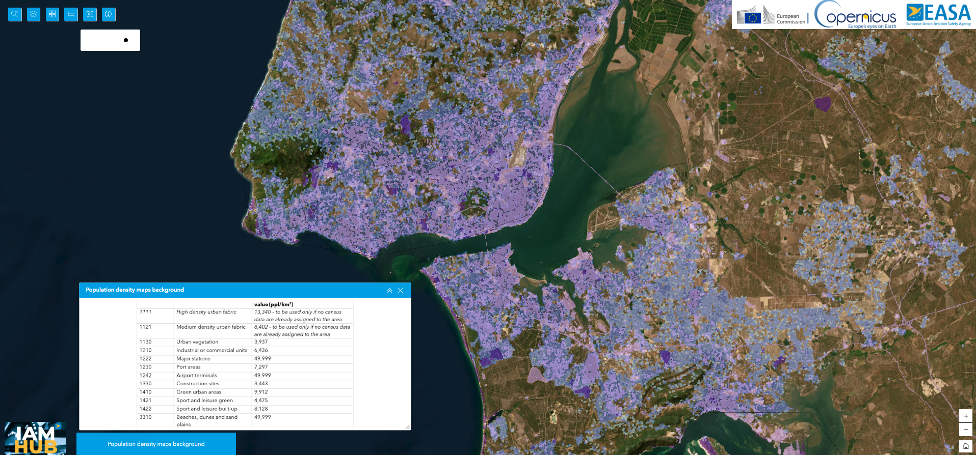 Os operadores de UAS poderão igualmente verificar dados oficiais disponíveis em PORDATA(https://www.pordata.pt/pt/estatisticas/populacao/populacao-residente/densidade-populacional ), INE (https://geoc2021.ine.pt/ ) and DGT (https://www.pordata.pt/pt/estatisticas/populacao/populacao-residente/densidade-populacional ). Estes dados não são especificamente recolhidos nem produzidos para representar a realidade do estado atual da Dpop (por exemplo, por km² ou em grelha de 100 × 100 m).